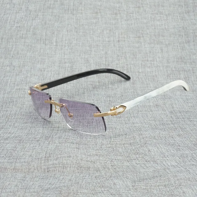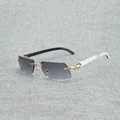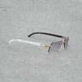 Vintage Rhinestone Black White Buffalo Horn Rimless Sunglasses Men Wood Sun Glasses Metal Frame Shades for Summer Club Eyewear