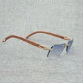 Natural Wood Sunglasses Men Black Buffalo Horn Rimless Eyeglasses Women Accessorie Metal Frame Oculos Square Gafas for Club